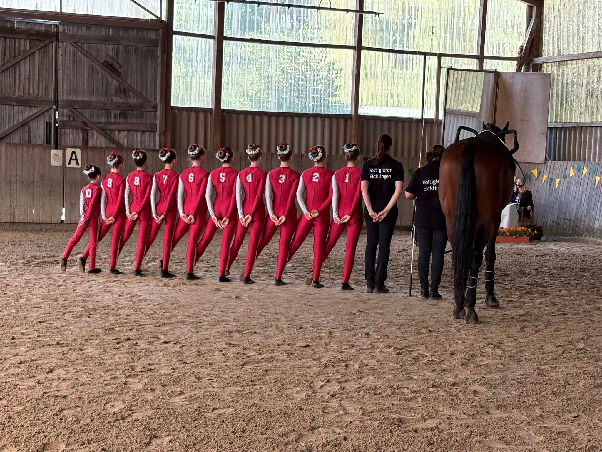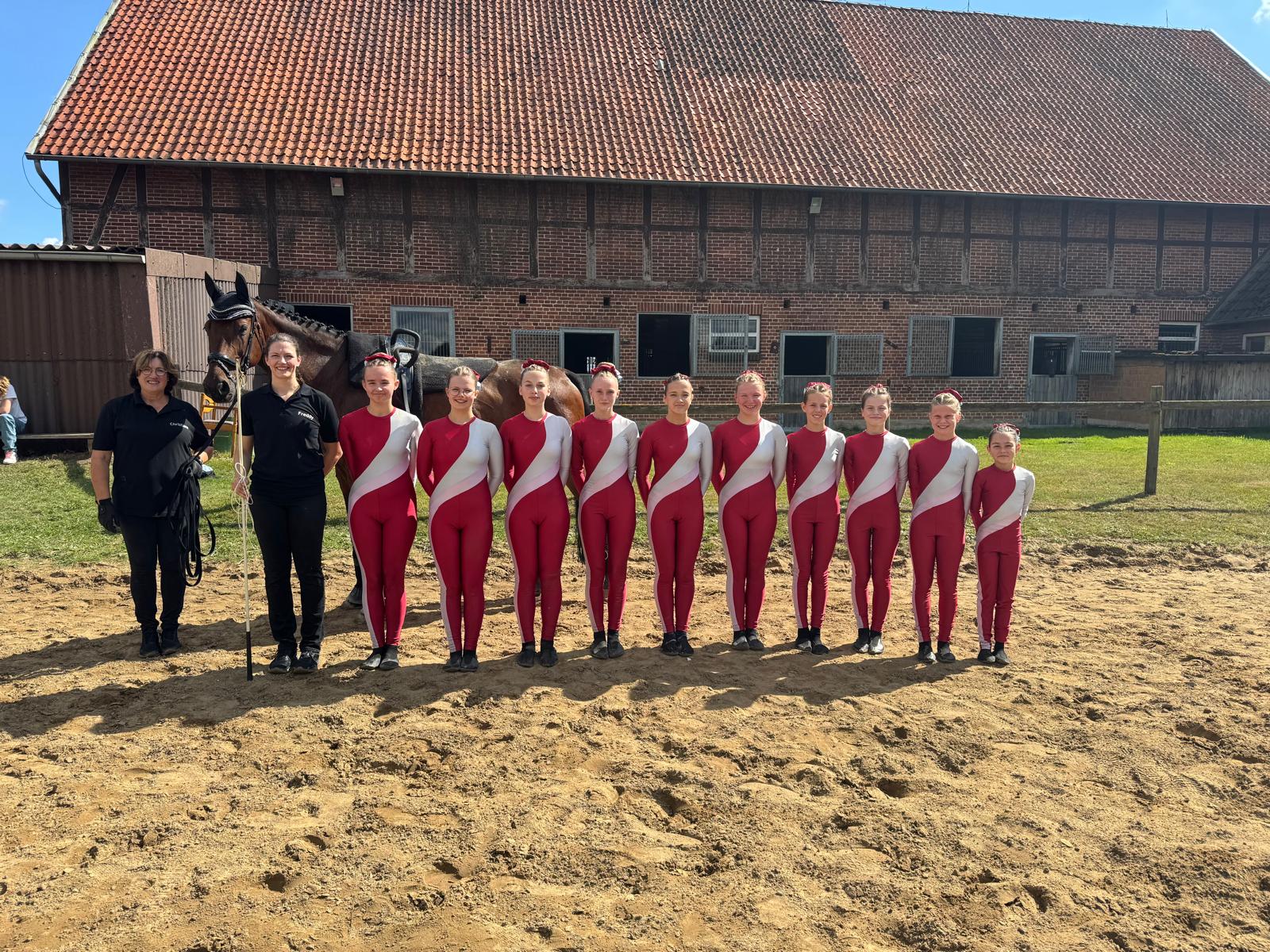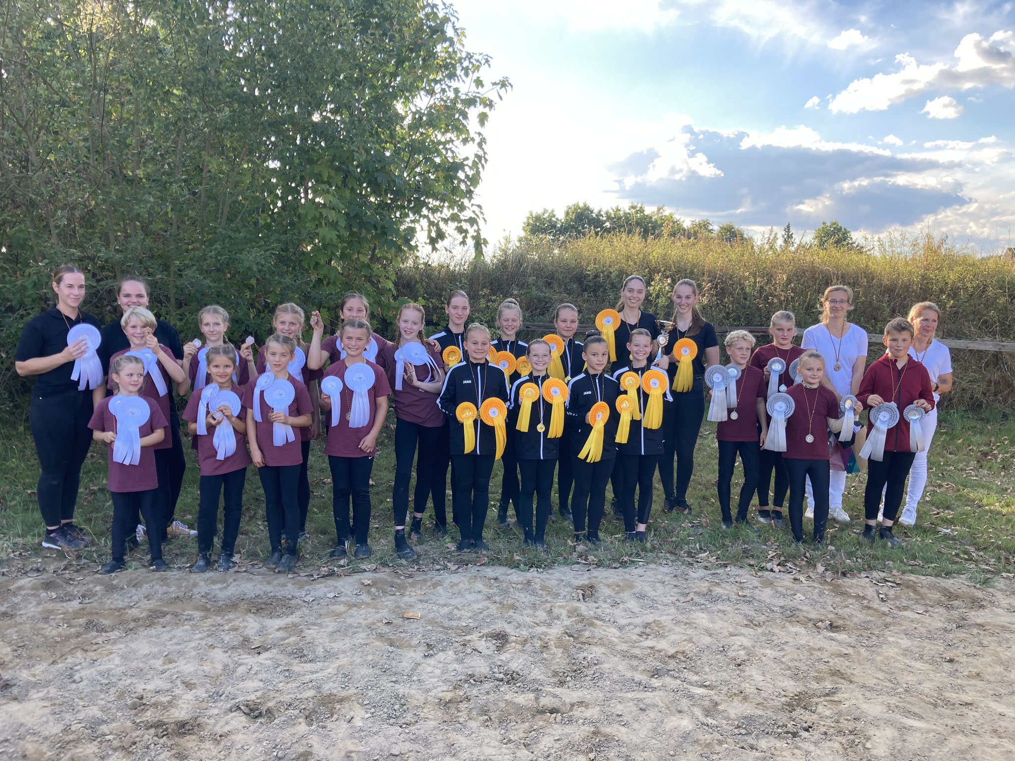 Am 6. September hat das traditionelle Voltigierturnier beim Reit- und Fahrverein Eicklingen stattgefunden. Die beiden Vorsitzenden Viviane Stones und Christiane Adam konnten insgesamt rund 160 Teilnehmende mit 21 Pferden und Ponys aus zwölf Vereinen begrüßen. „Wir freuen uns, dass unser Turnier so gut angenommen wird. Im Voltigiersport gibt es eine hohe Nachfrage, die Sportart ist unter Kindern und Jugendlichen weiterhin sehr beliebt. Auch wir haben eine lange Warteliste“, berichtet Christiane Adam. 25 Mannschaften, darunter fünf Eicklinger Teams, gingen in acht verschiedenen Prüfungen von WBO bis LPO an den Start. Auch drei einzelne Starts waren dabei. In diesem Jahr wurden in Eicklingen zudem auch die Kreismeisterschaften ausgetragen. In der sogenannten E-Gruppe sicherte sich das Team vom Reit- und Fahrverein Herzogstadt Celle den Kreismeistertitel, gefolgt vom PSG Rittergut Habighorst. Kreismeister der Maxi-Gruppen wurde ebenfalls Herzogstadt Celle. Auf dem 2. Platz konnte sich auch hier die PSG Rittergut Habighorst platzieren, dritte wurde die Gruppe „Eicklingen 5“.