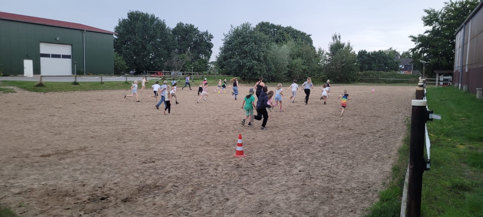 So war mit knapp 40 Kindern am Stall Kröger ordentlich was los: Grillen, Spiele und Disco... Auch Hobby-Horsing stand auf dem Programm. Bei der Nachtwanderung gingen die Kids auf Hufspuren-Suche
