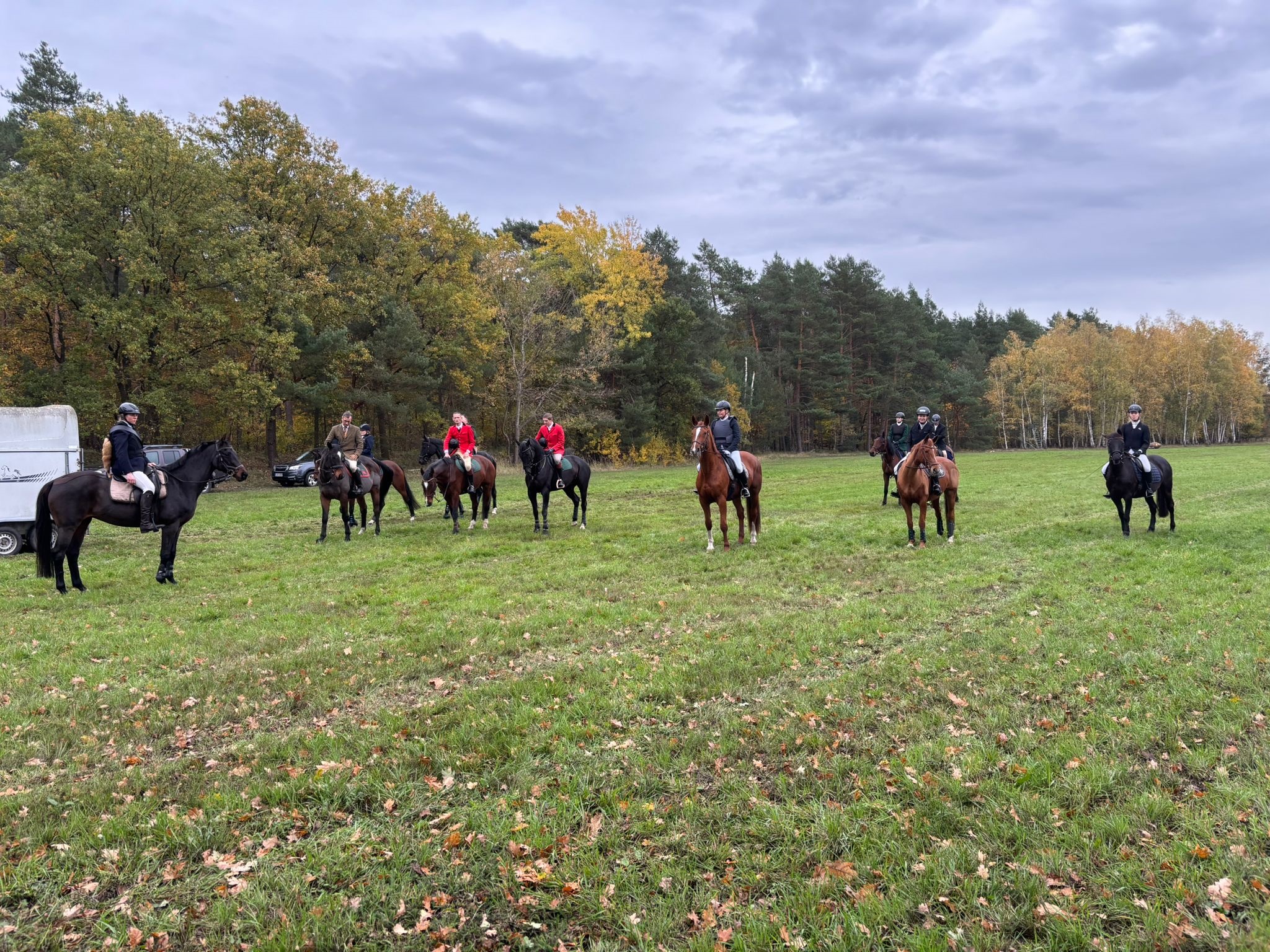 Eicklingen. Der Reit- und Fahrverein Eicklingen hat am Sonnabend, 1. November, wieder eine traditionelle Hubertus-Jagd veranstaltet. 13 Jagdreiter und -reiterinnen wurden auf der Wiese am Funkturm zwischen Wienhausen und Eicklingen von der ersten Vorsitzenden Viviane Stones und der Freizeitwartin Sarah Wilke begrüßt. Zusätzlich waren zahlreiche Zuschauende gekommen, um den traditionellen Abritt zu den Klängen der Jagdhornbläser des Hegerings Flotwedel beizuwohnen. Die Veranstaltung entwickelt sich zu einem wahren Familien-Event, so begleitete eine große Schaar Kinder das Jagdgeschehen auf den zwei Planwagen, die zum Pausen-Platz fuhren. Bei Snacks und Getränken konnten sich alle Teilnehmenden in der Nähe von Sandlingen stärken, bevor es zurück zum Austragungsort für das sogenannte Ausreiten des Fuchses ging.