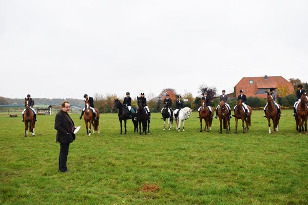Sofie Nagel, Isabell Rink, Marta Schumacher, Anna-Karoline Funke, Charlotte Dettmer und Levke Hecht eröffneten die Prüfung. Frederike Heidmann an der Longe, wurde von Lena Sieberer unterstütz,