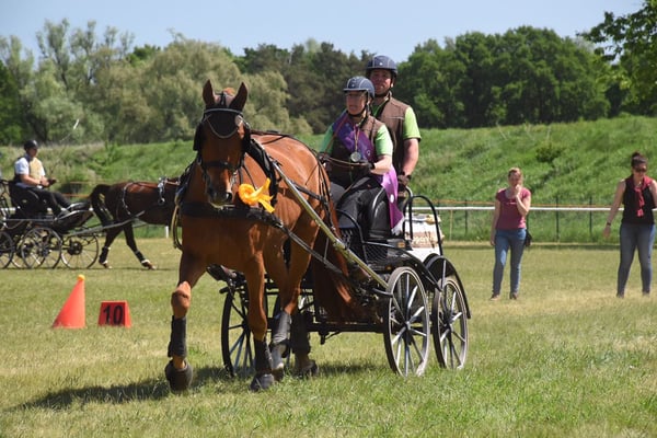 Dolly und den fünften Platz mit Elektra H in der ersten Prüfung. Gleich im Anschluss ging es mit dem Hindernissfahren weiter. Hier muss man die Kutsche durch enge Kegeltore lenken in möglichst