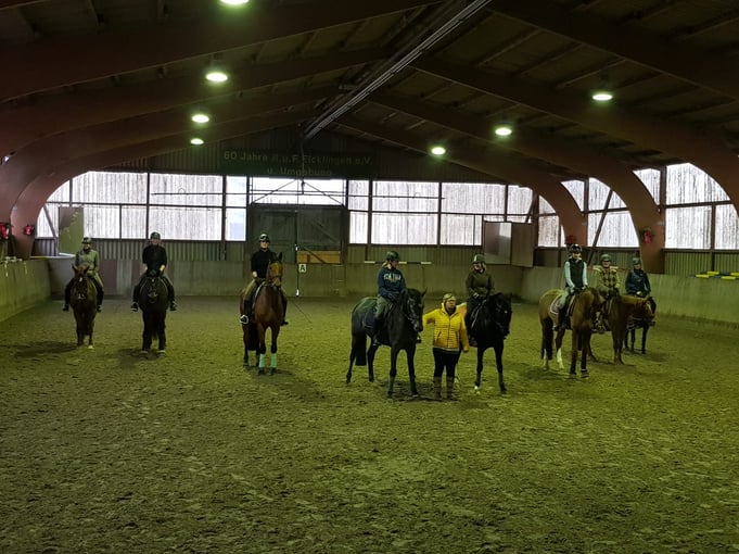 Am 31.12.2018 trafen sich die Eicklinger Pferdefreunde zum Silvesterreiten in der Reithalle. Acht Reiterinnen ritten unter der Leitung von Annette Prieß eine Quadrille und absolvierten zum